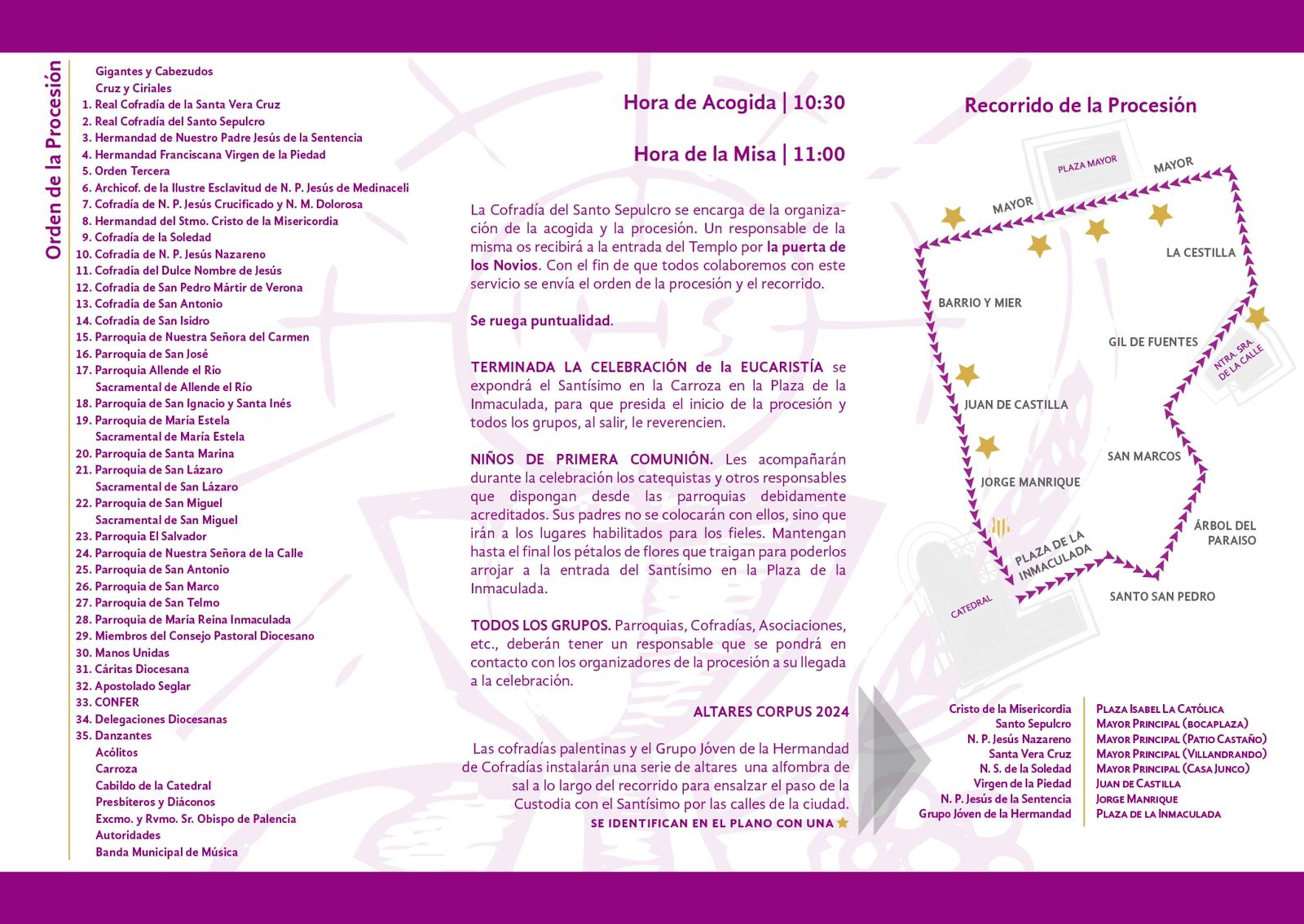 Así mismo, todos los Hermanos que quieran procesionar, dado nuestro título de Sacramental tendrán que estar a las 10:00h en la cofradía para ir todos juntos a la Catedral de San Antolín de Palencia.