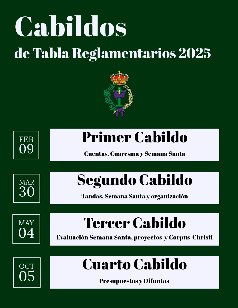 Compartimos con vosotros las fechas de los cuatro Cabildos de Tabla Reglamentarios para este año 2025. ¡Tomad nota!