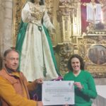 La Secretaria Julia Blanco Martín y el Tesorero Miguel Ángel Castro Espinosa de la AECC en Palencia, acudieron a la capilla de la Vera Cruz en la Iglesia de Conventual de San Pablo para hacerles la entrega de este donativo.