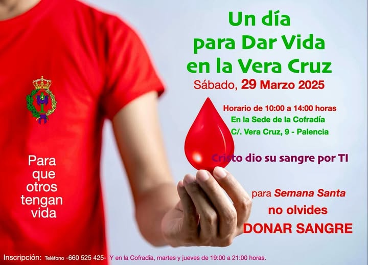 Desde la Vocalía de Caridad os animamos a participar en “Un día para dar vida en la Vera Cruz”, nuestra jornada de donación de sangre, el próximo sábado 29 de marzo.