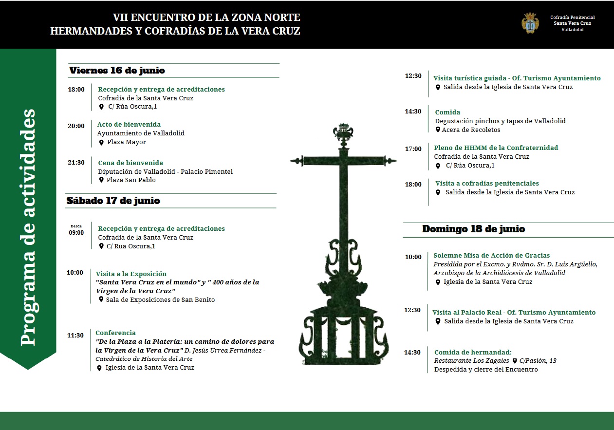 La Cofradía Penitencial de la Santa Vera Cruz de Valladolid organiza los días 16, 17 y 18 de junio un Encuentro Nacional de Cofradías y Hermandades de la Vera Cruz y el Pleno de la Confraternidad de la Vera Cruz con carácter previo a la celebración de la Coronación Canónica a de la Virgen de los Dolores el 23 de Septiembre de 2023.