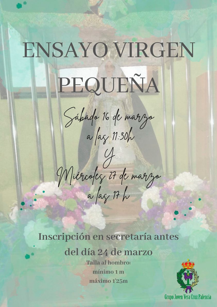 Os recordamos que todos los niños que quieran llevar a la Virgen el próximo Jueves Santo, en la Procesión de la Oración del Huerto, deberán acudir a los ensayos obligatorios que se realizarán: