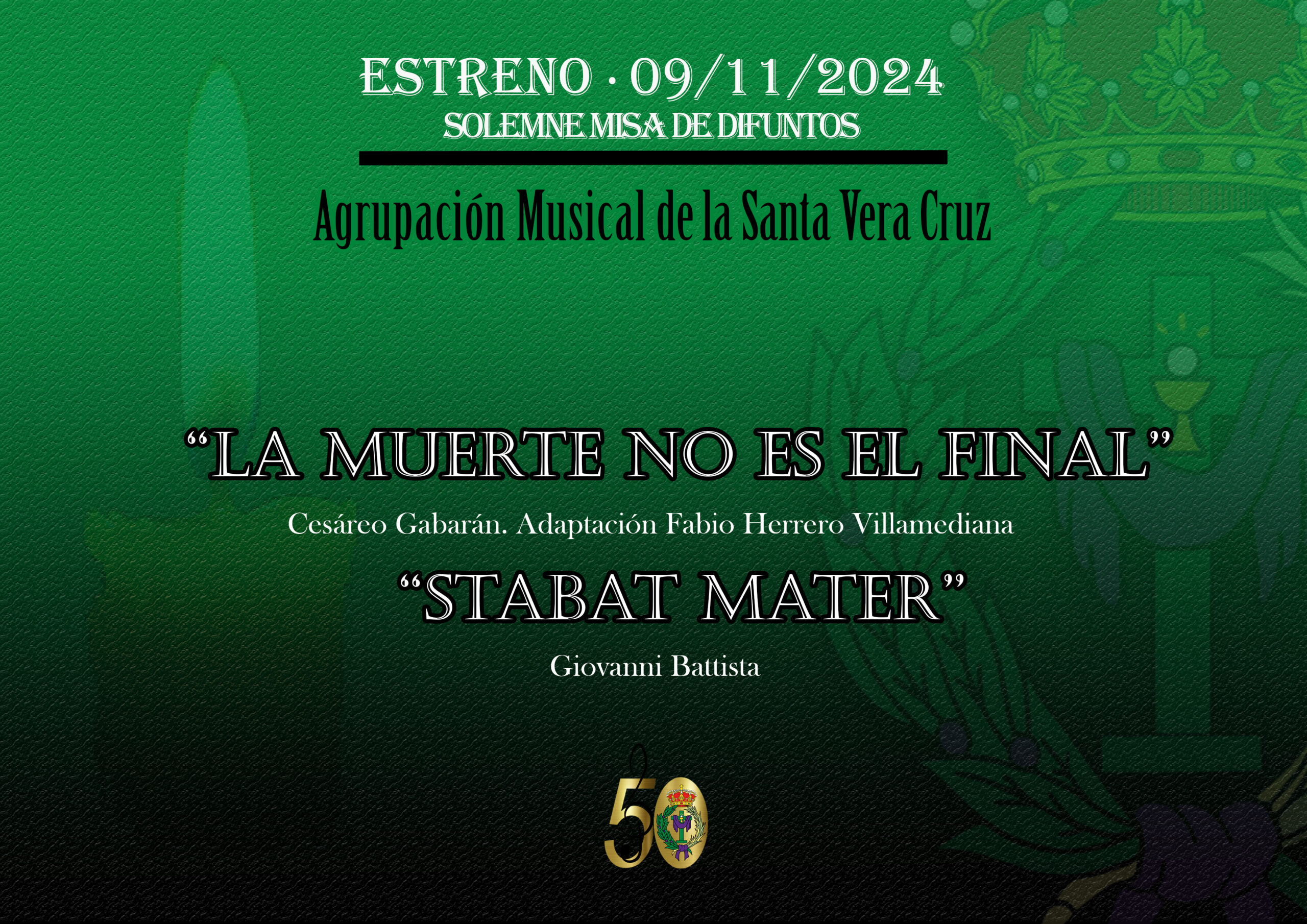 Por primera vez y como novedad este año, nuestra Agrupación Musical participará en la Solemne Misa de Difuntos que se celebrará el sábado 9 de noviembre, a las 19:30h en la Iglesia Conventual de San Pablo.