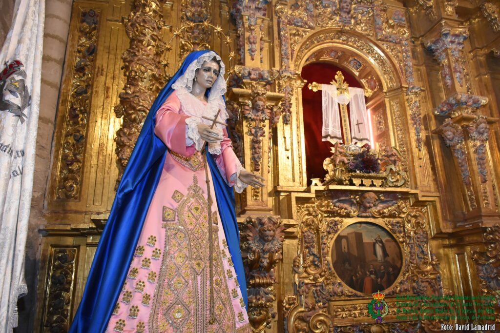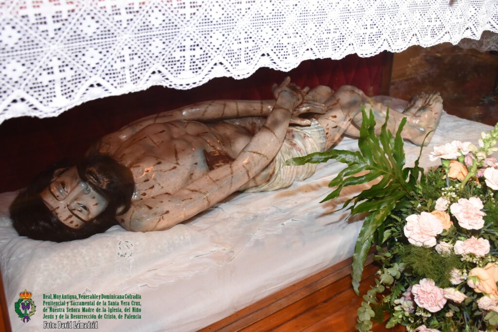 Nuestro Sagrado Titular, la Santa Vera Cruz – Lignum Crucis, y las imágenes de Nuestra Señora de la Vera Cruz, Cristo Yacente, Atado a la Columna y Coronado de Espinas han regresado a nuestra capilla después de estar preparados en sus tronos y carrozas para la Procesión de la Oración del Huerto, en la tarde noche del Jueves Santo, que desgraciadamente no pudo realizarse.