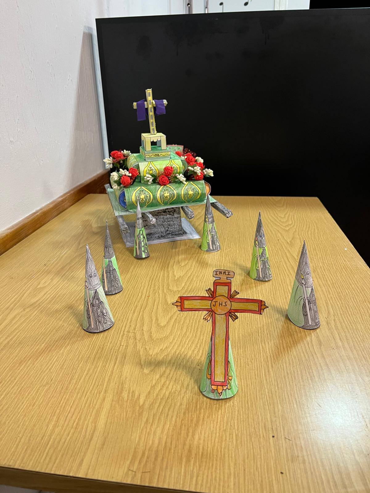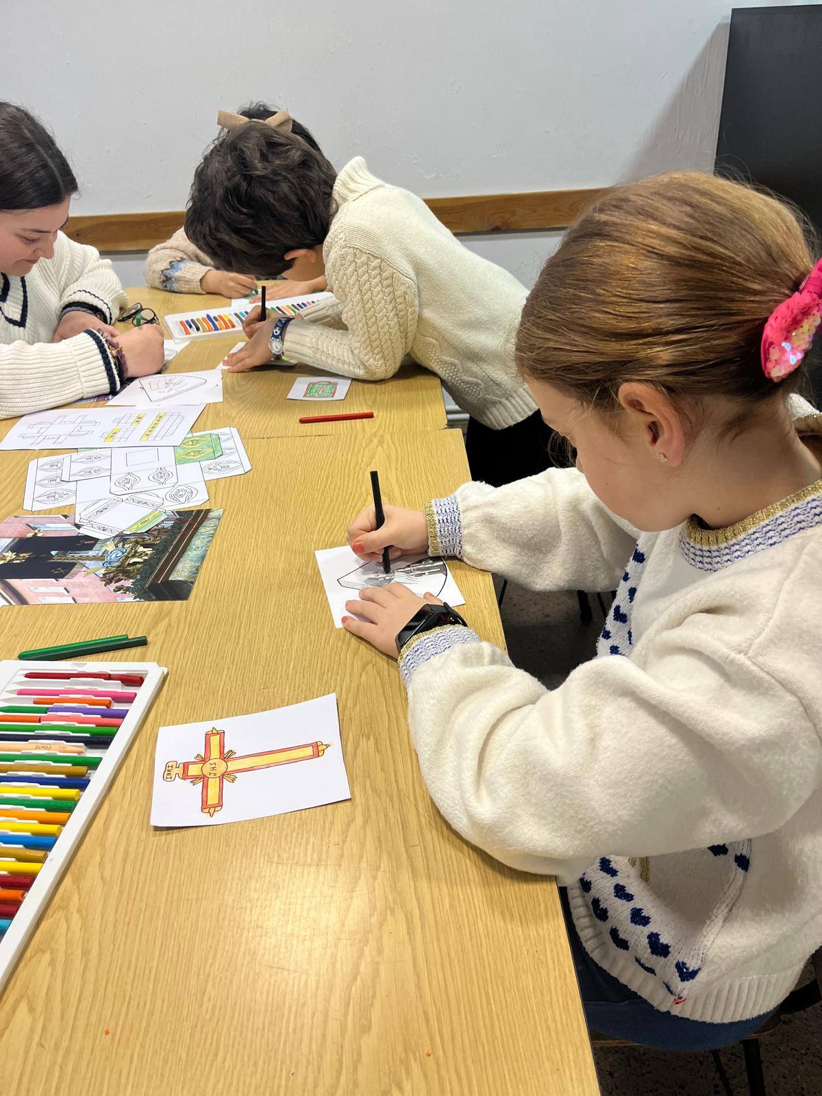 Pero no solo hubo arte y manualidades, también descubrieron un tesoro de nuestra cofradía: el Lignum Crucis, una reliquia que nos une con la verdadera Cruz de Cristo. A través de una explicación sencilla y cercana, entendieron su significado y la importancia que tiene en nuestra Cofradía.