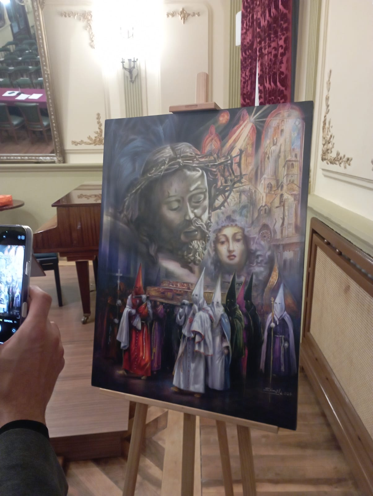 El cuadro, ha sido realizado por el artista palentino, José Damian Simal, quien pertenece a la Asociación Thieldon, encargada de realizar los último carteles de nuestra Semana Santa.
