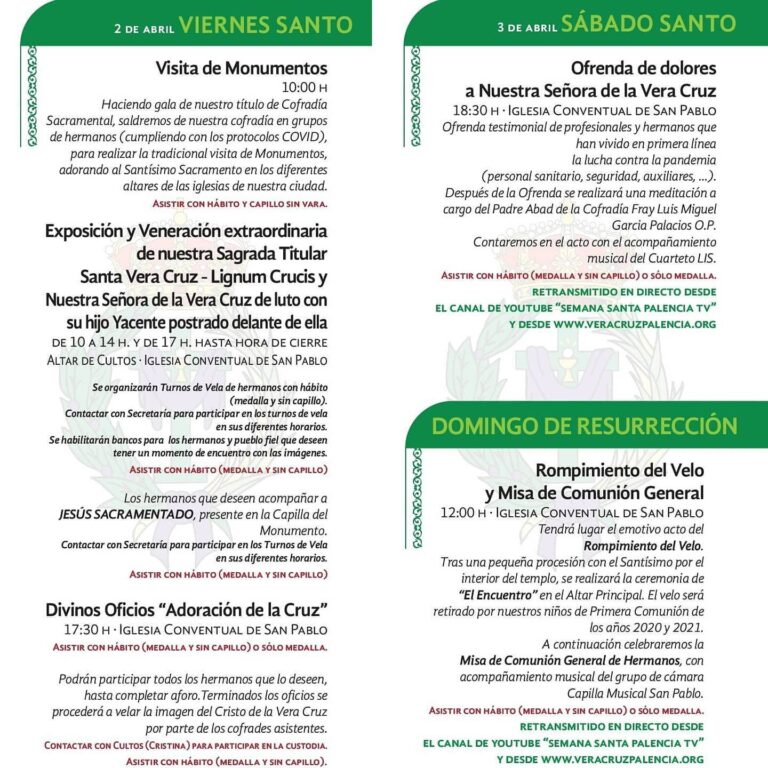Por Vera Cruz PalenciaPublicado el Publicada en 2021, Actos y Cultos, Semana SantaSin comentarios en Programa Actos y Cultos Semana Santa 2021