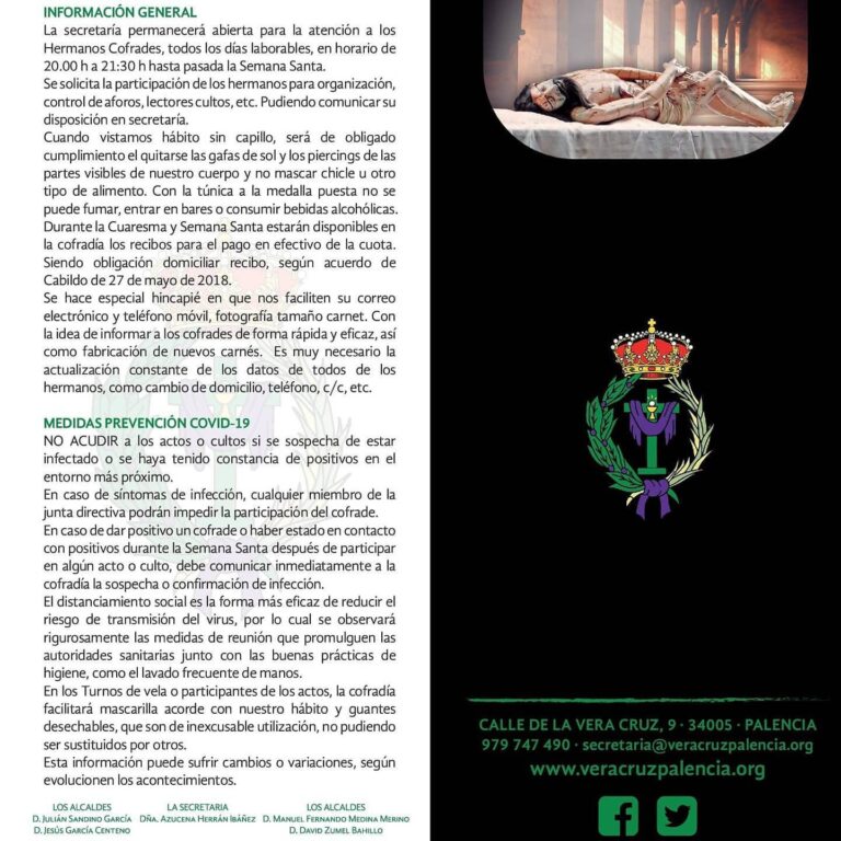 Os presentamos el programa de Actos y Cultos que desde la Cofradía Penitencial y Sacramental de la Santa Vera Cruz hemos preparado para celebrar la Semana Mayor.