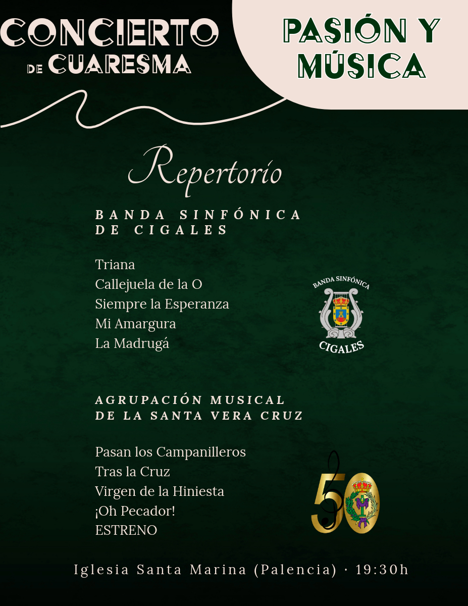 Compartimos con vosotros el repertorio que se tocará esta tarde en el certamen Pasión Y Música a las 19:30h, en la Iglesia de Santa Marina.