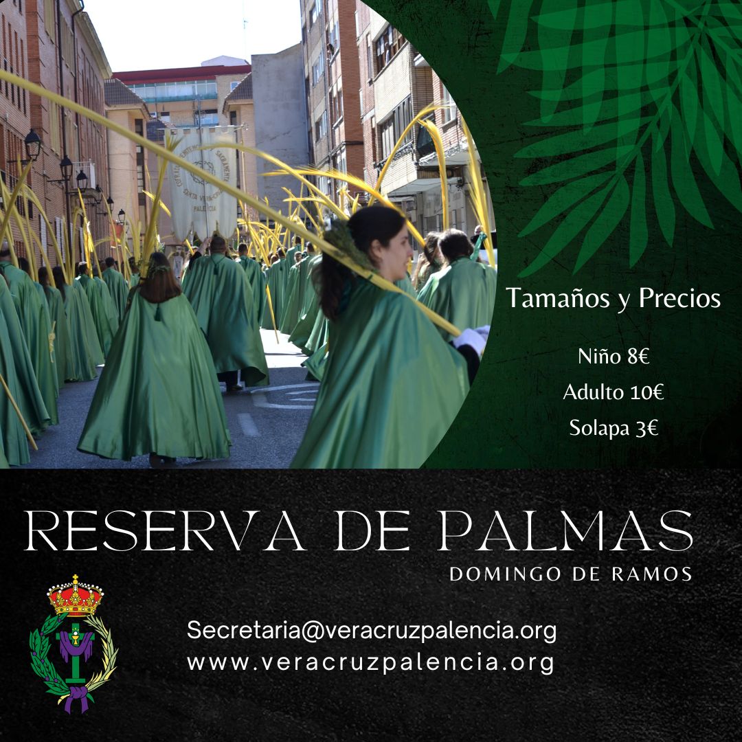 Se acerca la celebración de la Semana Santa, y por ello la Real Cofradía de la Santa Vera Cruz comienza a prepararse para vivir intensamente el Domingo de Ramos, por ello, este año pone a disposición de todos sus cofrades la reserva de palmas para recibir al Señor en su entrada a Jerusalén.
