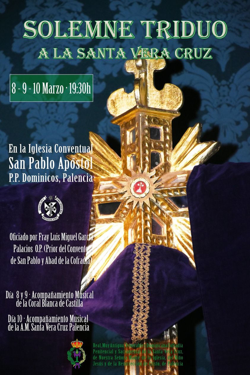 Los próximos días 8, 9 y 10 de marzo del presente año, se celebrará D.m. el Solemne Triduo en honor a la Santa Vera Cruz, sagrada titular de nuestra cofradía, a las 19:30h., en la Iglesia Conventual de San Pablo.